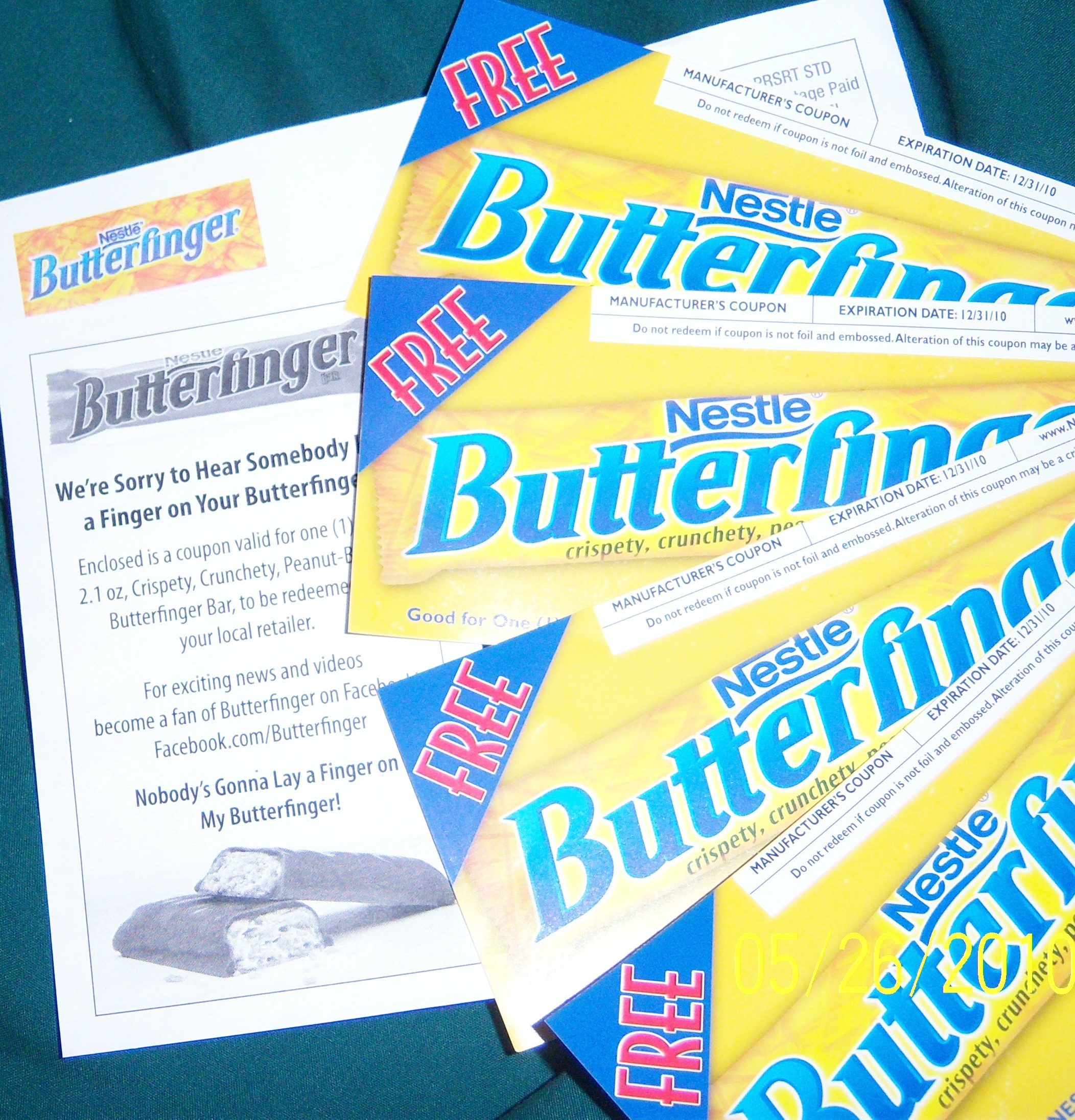 4 Free Butterfinger candy bar coupons