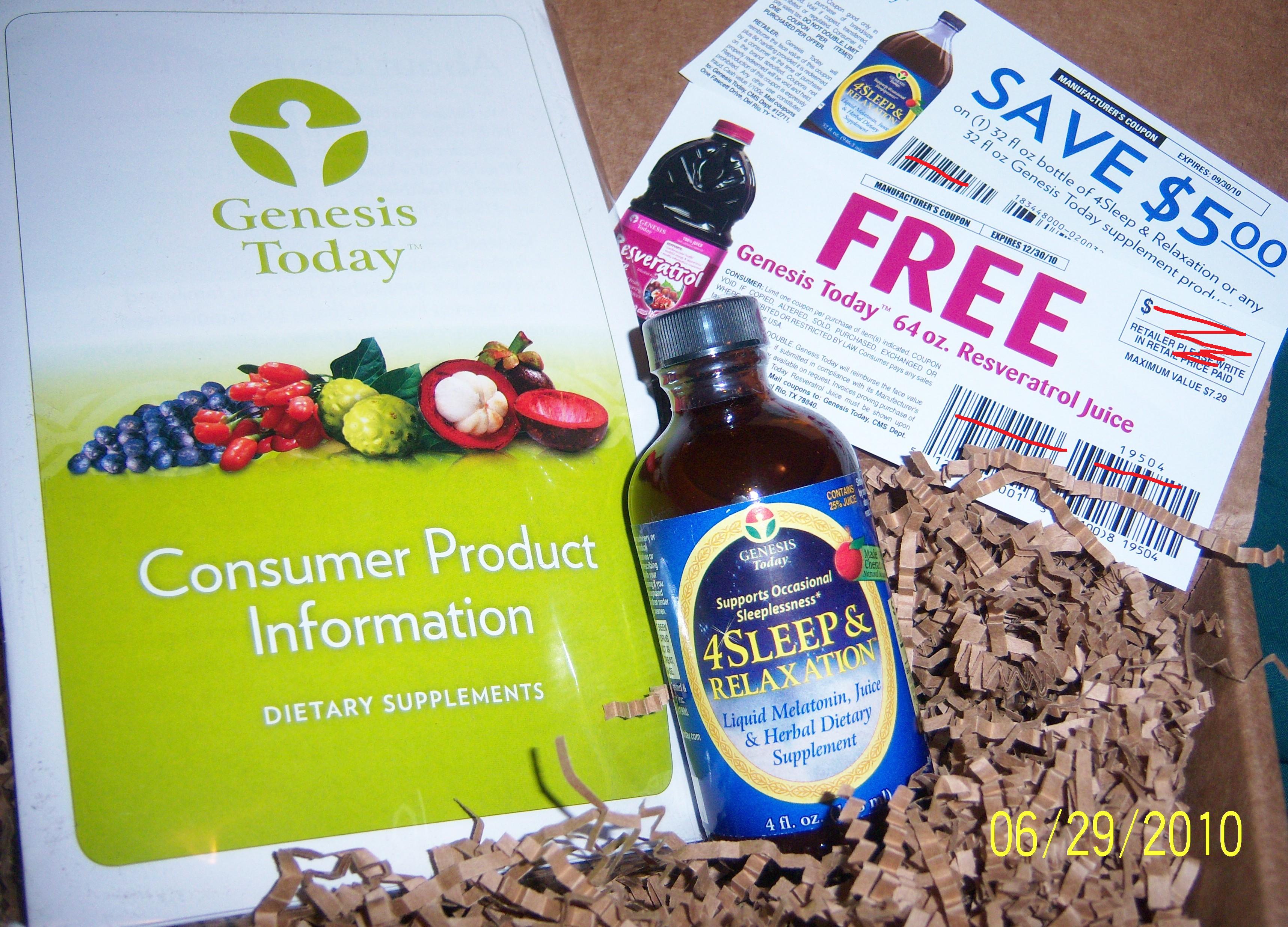 (Coupons: Free Genesis Today juice & $5 off supplements).