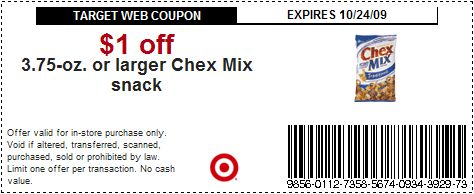 Chex mix 3.75 oz bag -by the registers or food area $0.99