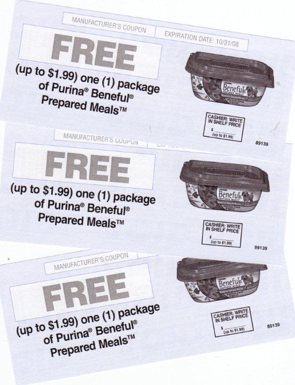 Sent an email to Beneful, my dog loves their food, its made by Purnia, three free coupons