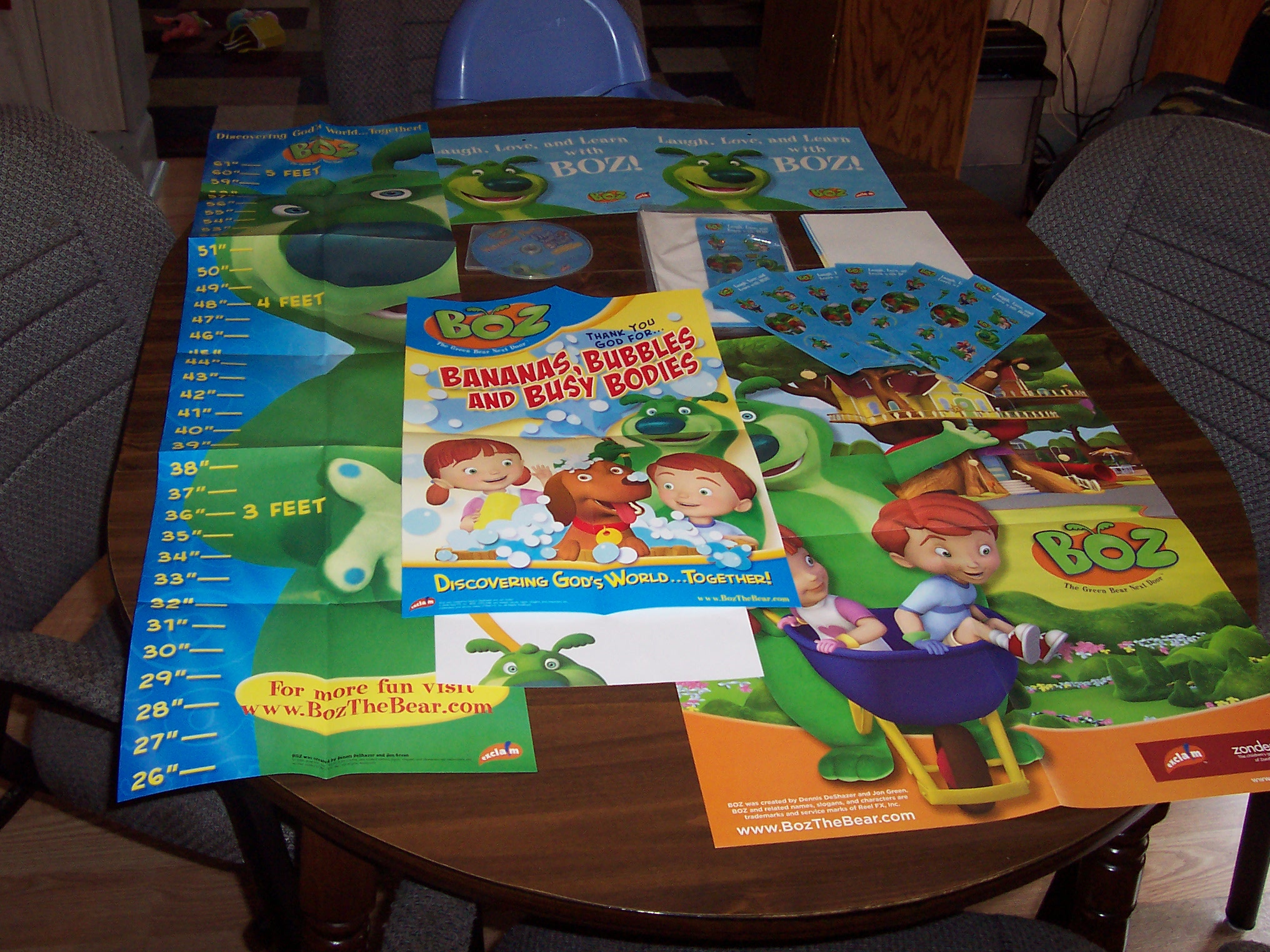 growth chart, dvd, 10 sheets of stickers, 2 other posters, 20 mini posters