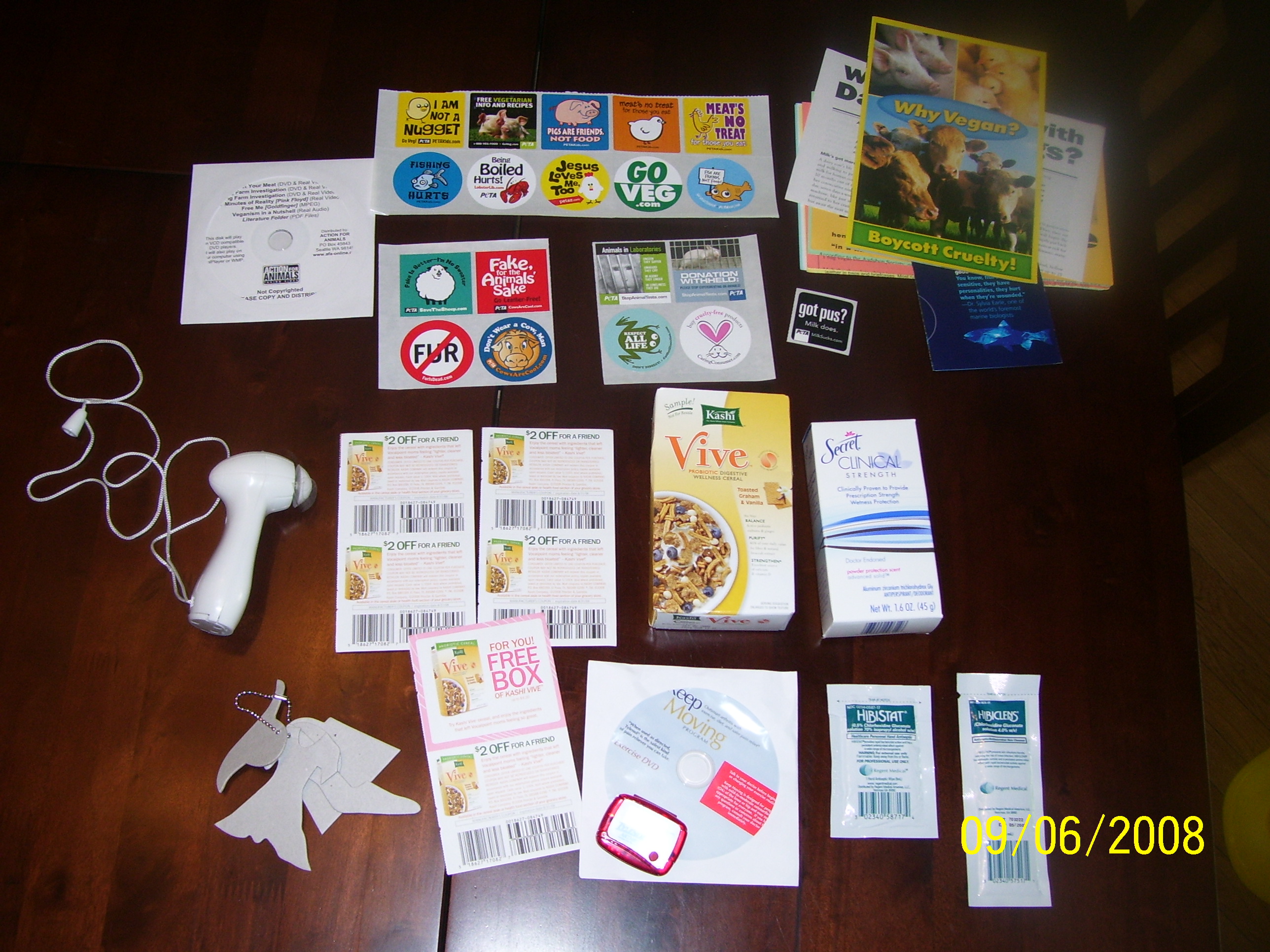 Vegan starter kit w/stickers, pamplets & DVD could be from either one of these.. http://knuckeyimports.com/?s=vegan