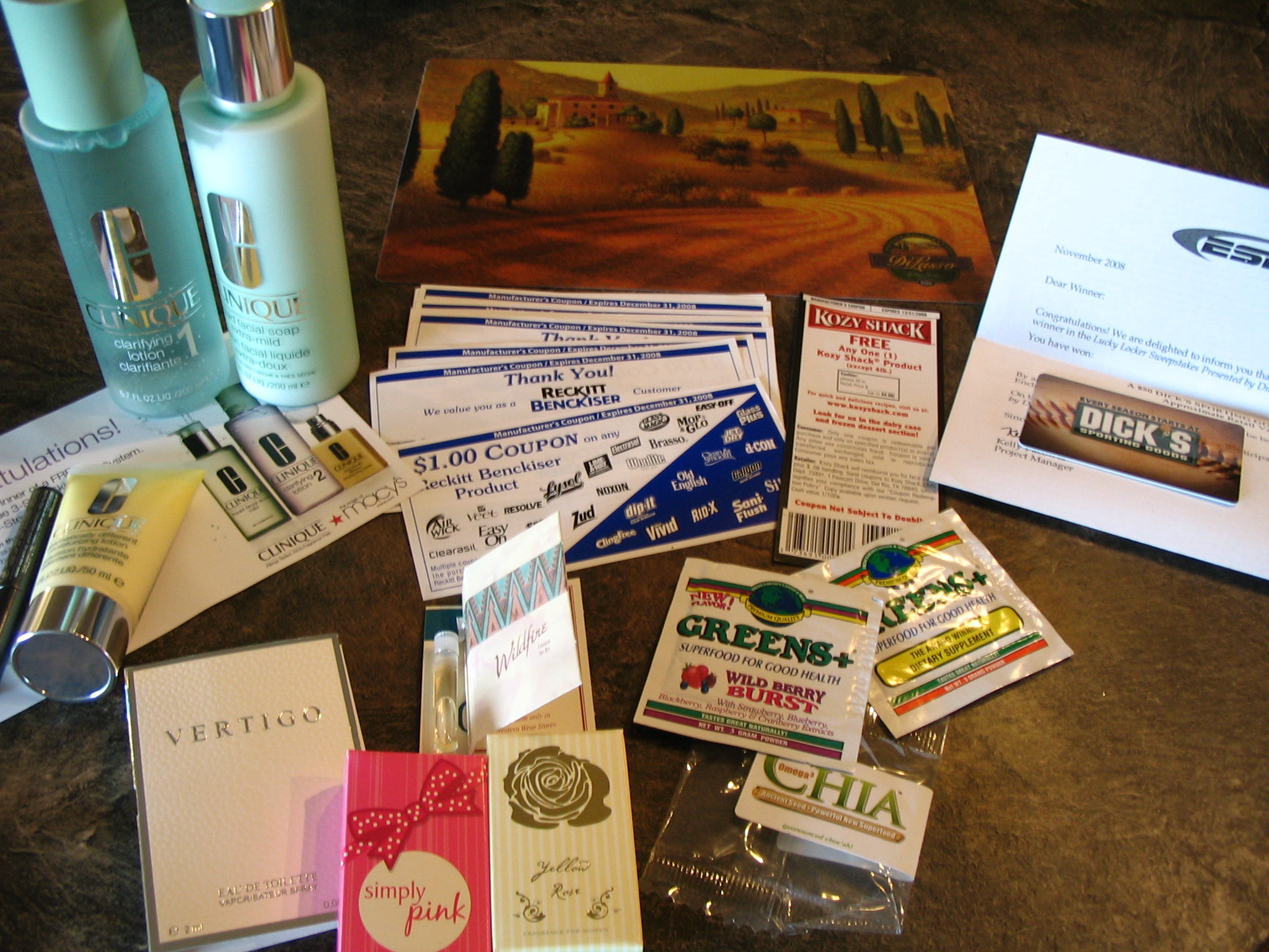 and two sweepstakes wins: Clinique skin care system from Macy’s, and $50 Dick’s Sporting Goods gift card from the Lucky Locker sweepstakes (yayyy!!! :-))