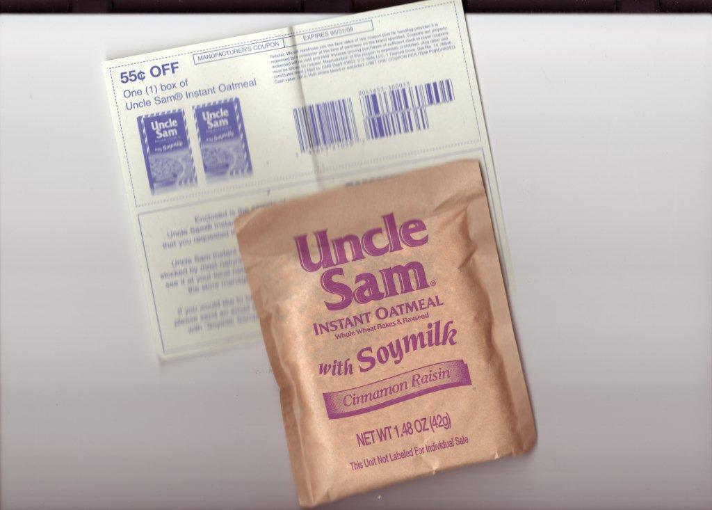 Free sample packet of Uncle Sam Instant Oatmeal with Soymilk-EXPIRED