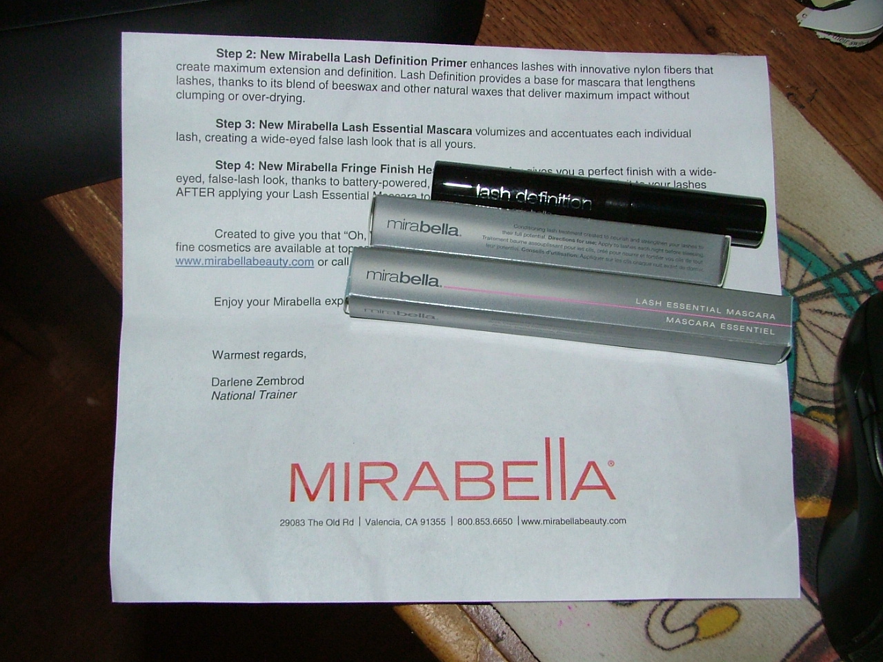 My package included: Mirabella Lash Therapy conditioner, Mirabella Lash Definition Primer, & Mirabella Lash Essential Mascara.