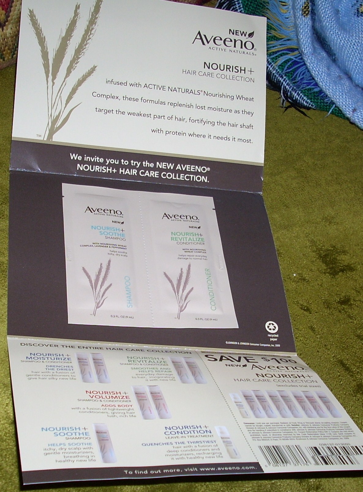 Received this in todays mail. The Aveeno Active Naturals + Soothe shampoo and the Nourish+ Revitalize Conditioner. Came with a $1 coupon from CVS pharmacy.
