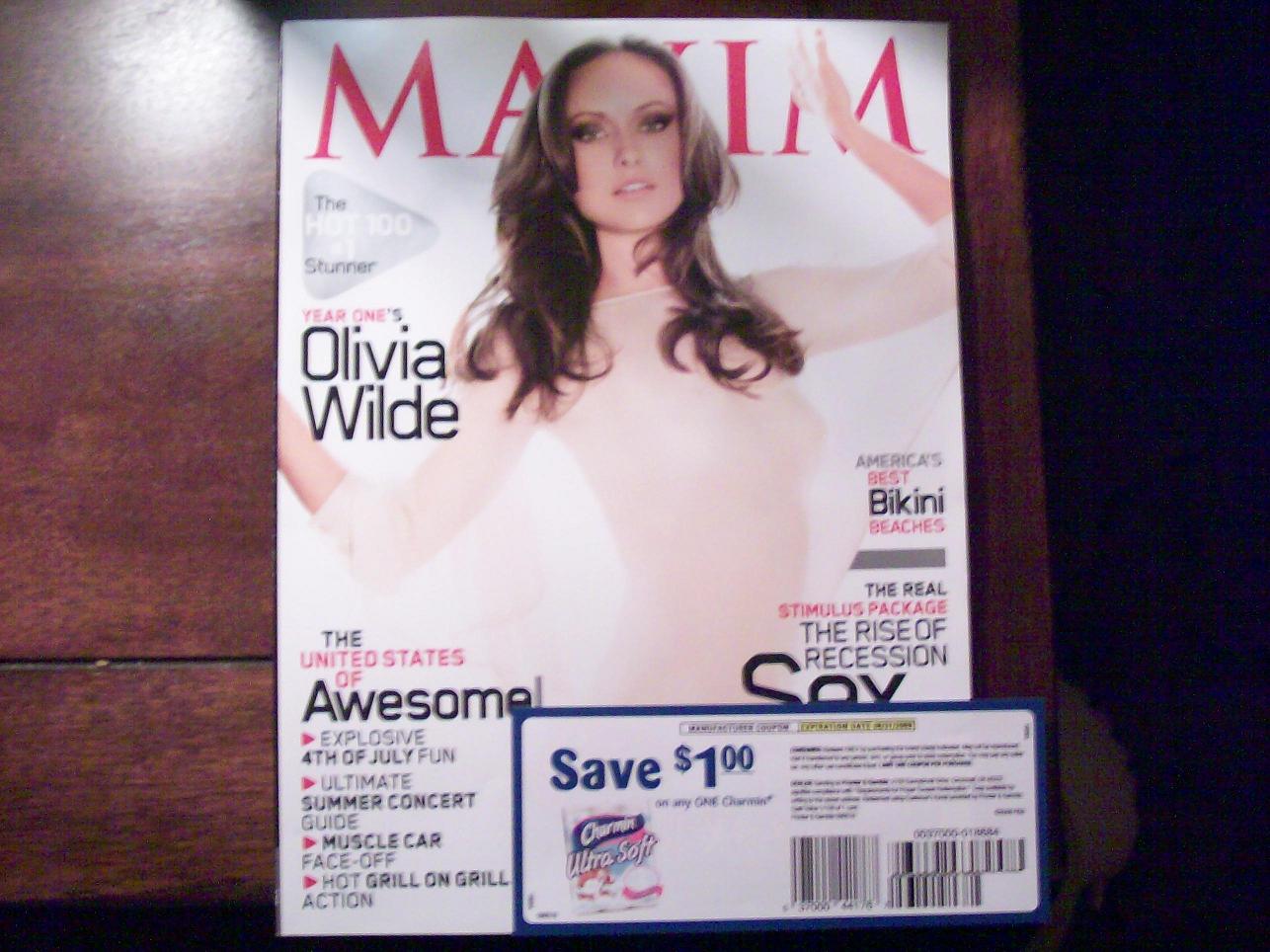 Free Maxim magazine, have been getting this for free for about 4 years. The Charmin coupon came from Modern Mom I can’t find the link though sorry. http://www.modernmom.com
