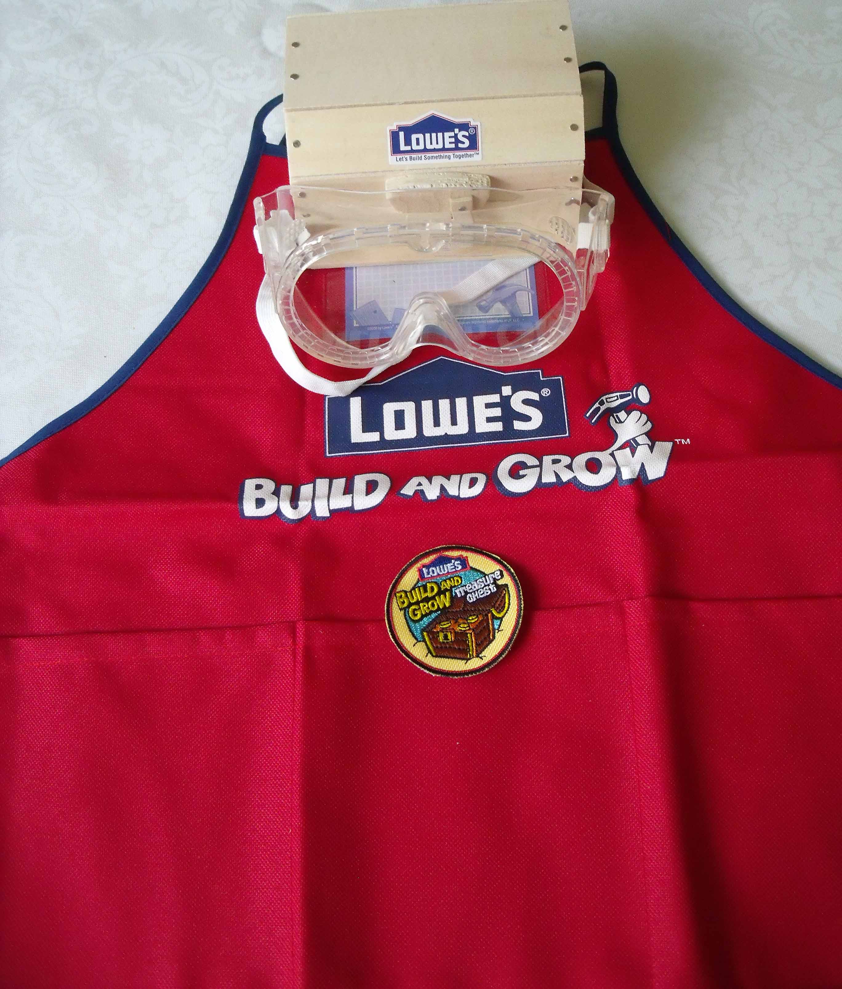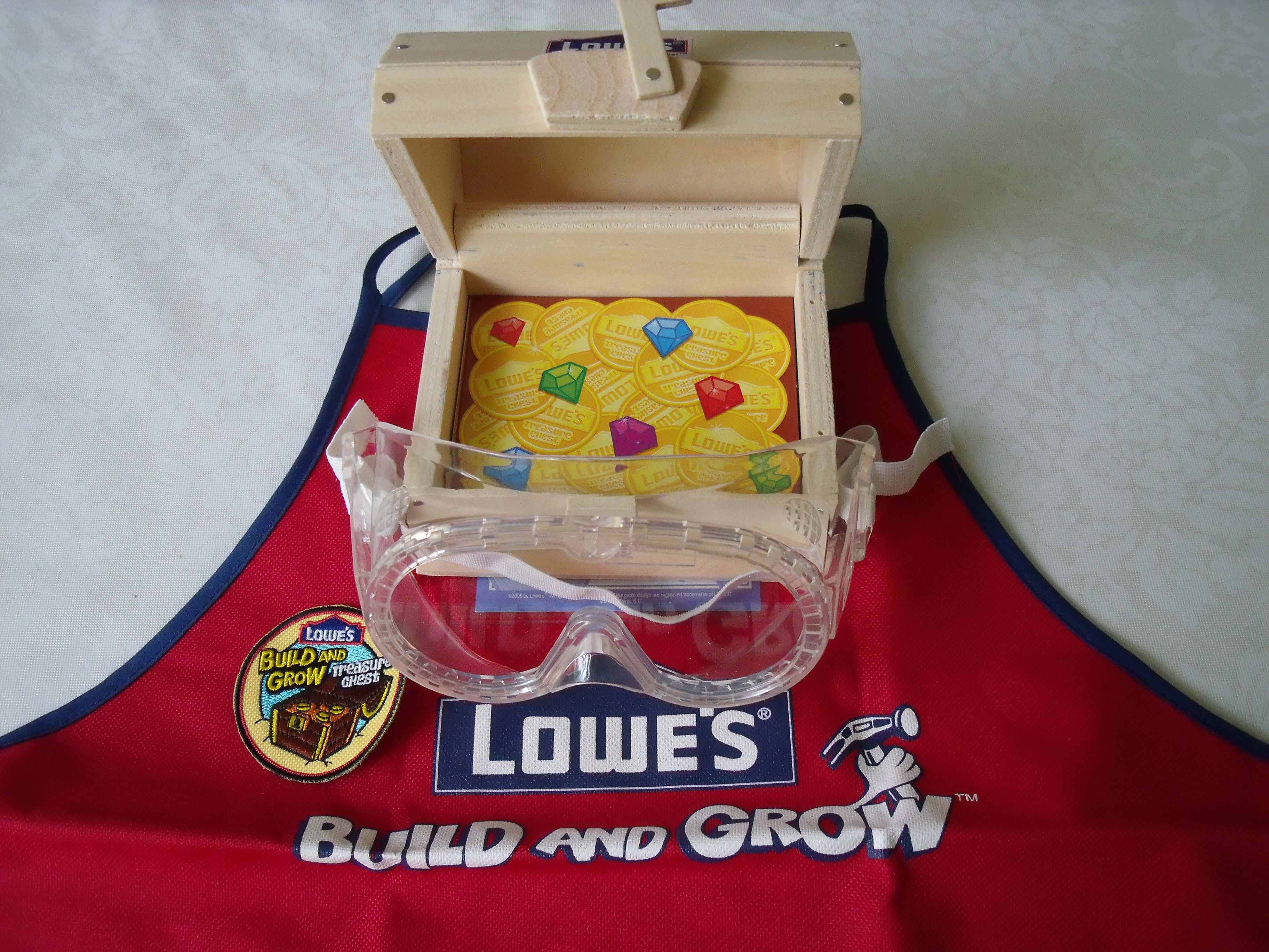 Today my dad and I went to Lowes for the Build and Grow treasure chest project. All I can say is Yay! I did all the work while my dad watched (so I didn’t hurt myself).
