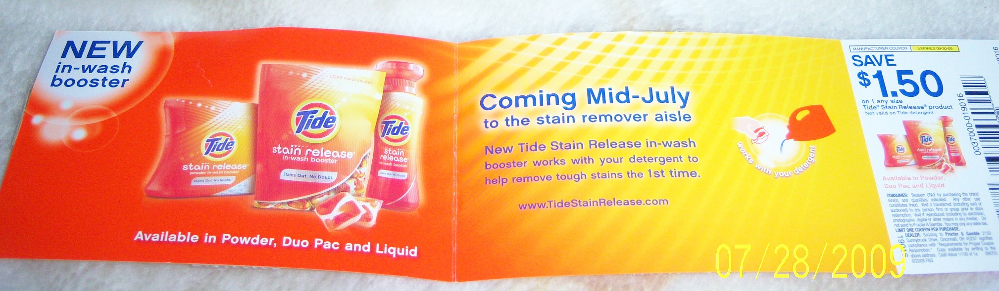 Save $1.50 any size Tide Stain Release product coupon