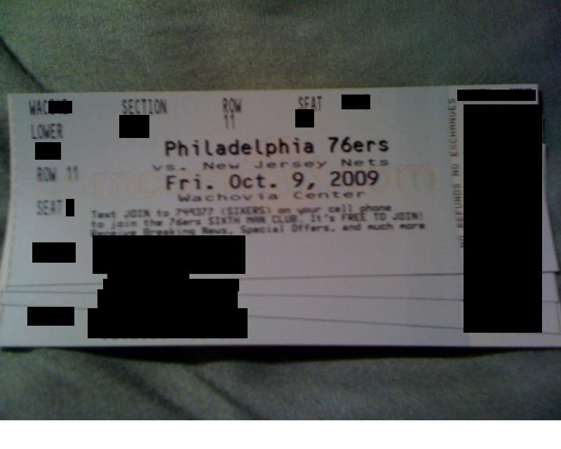I picked these up yesterday, my dad came with me and the lady gave us our tickets together. Last year they were pre-printed so our tickets weren’t near each other, but this year they printed them as you brought in the e-mail. I got 11th row near the away teams bench. Not bad at all, but nobody really cares about the 76ers this year with the all the Vick controversy going on with the Eagles.