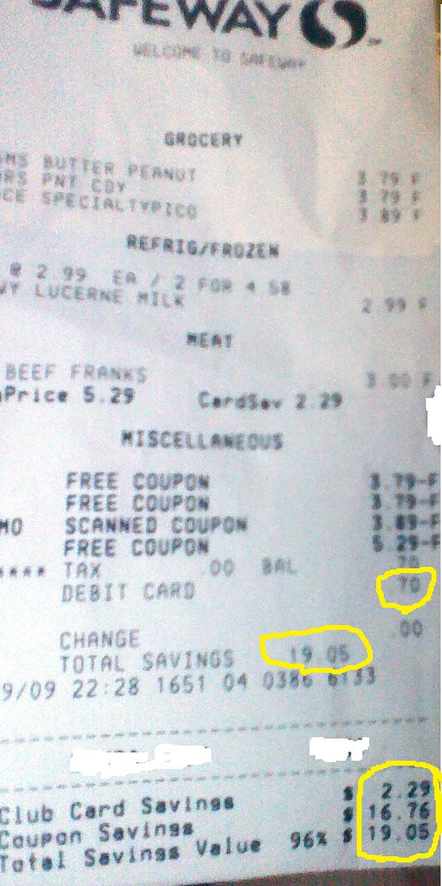 I went to the store to pick up milk, brought some coupons, and only ended up paying 70 cents for $20 worth of food!