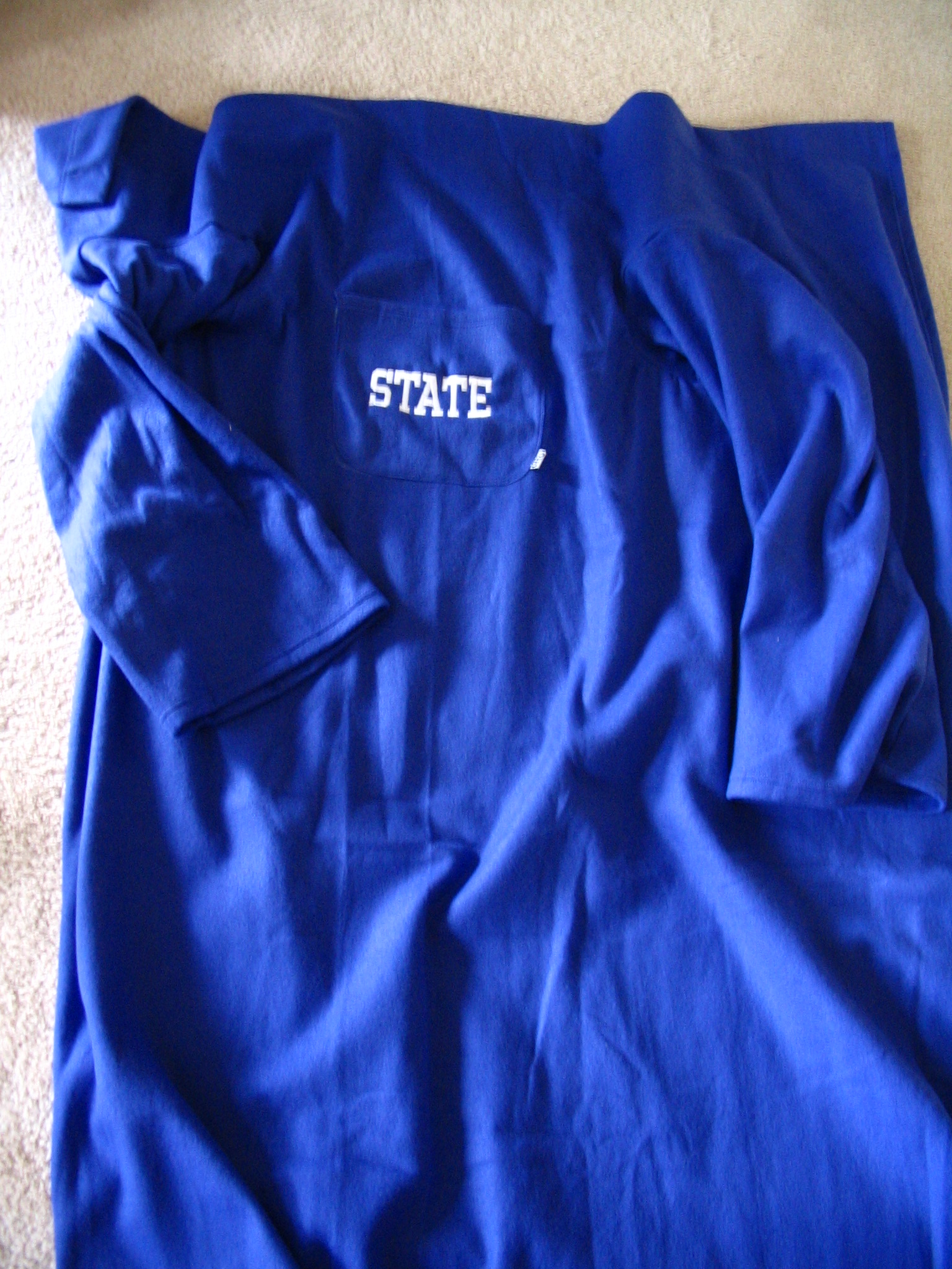 The “Stanket” from Bergwood/Allstate, came today! I love the chest pocket (for SNACKS? :kekeke: ) and the fact that the little tag on the pocket says “OMG”. It’s huge and warm and polyester-y and freaks out the cat, what more can you want?
