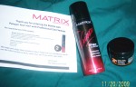 Matrix samples: Vavoom Design Pulse Glow to Pieces shine wax & ShapeMAKER hairspray