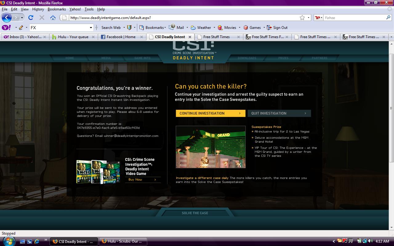 You won an Official CSI Drawstring Backpack playing the CSI: Deadly Intent Instant Win Investigation.