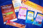 3 Emergen-C samples & $1 off coupon, Slim Fast bar, NASA space weather folder that came with bookmarks, a poster and other info & a disc. Also, 7 mags, 2 Golden Gazette newspapers