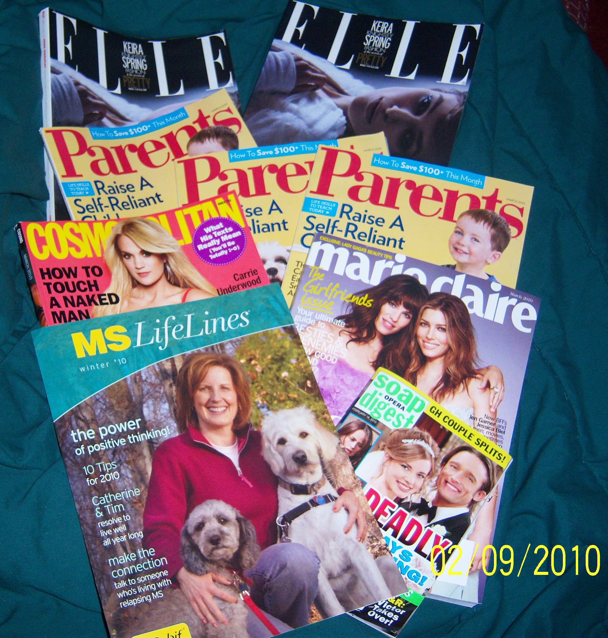 Weight Watcher’s magazine(Nov/Dec issue ??), coupons for Victorias Secret, Coupons for Pull ups, 5 more Nestle crunch coupons, and samples from Aquacentuals.