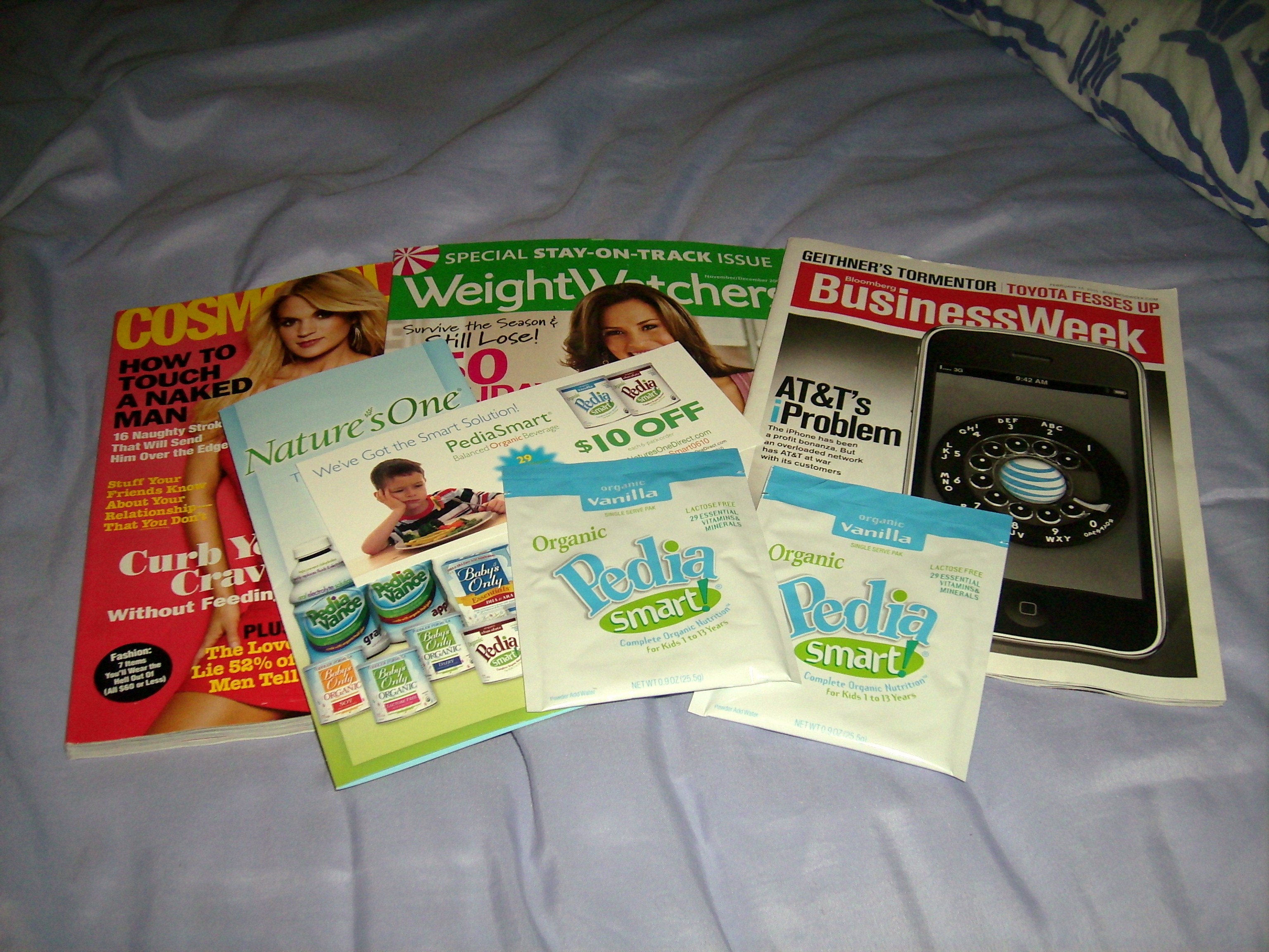 –PediaSmart! packets – vanilla -Business Week magazine -Cosmopolitan magazine -Weight Watchers magazine