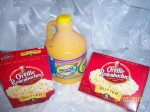 1 gallon jug of Sunny D orange juice & 2 Orville Redenbacher’s popcorn 6-pack boxes