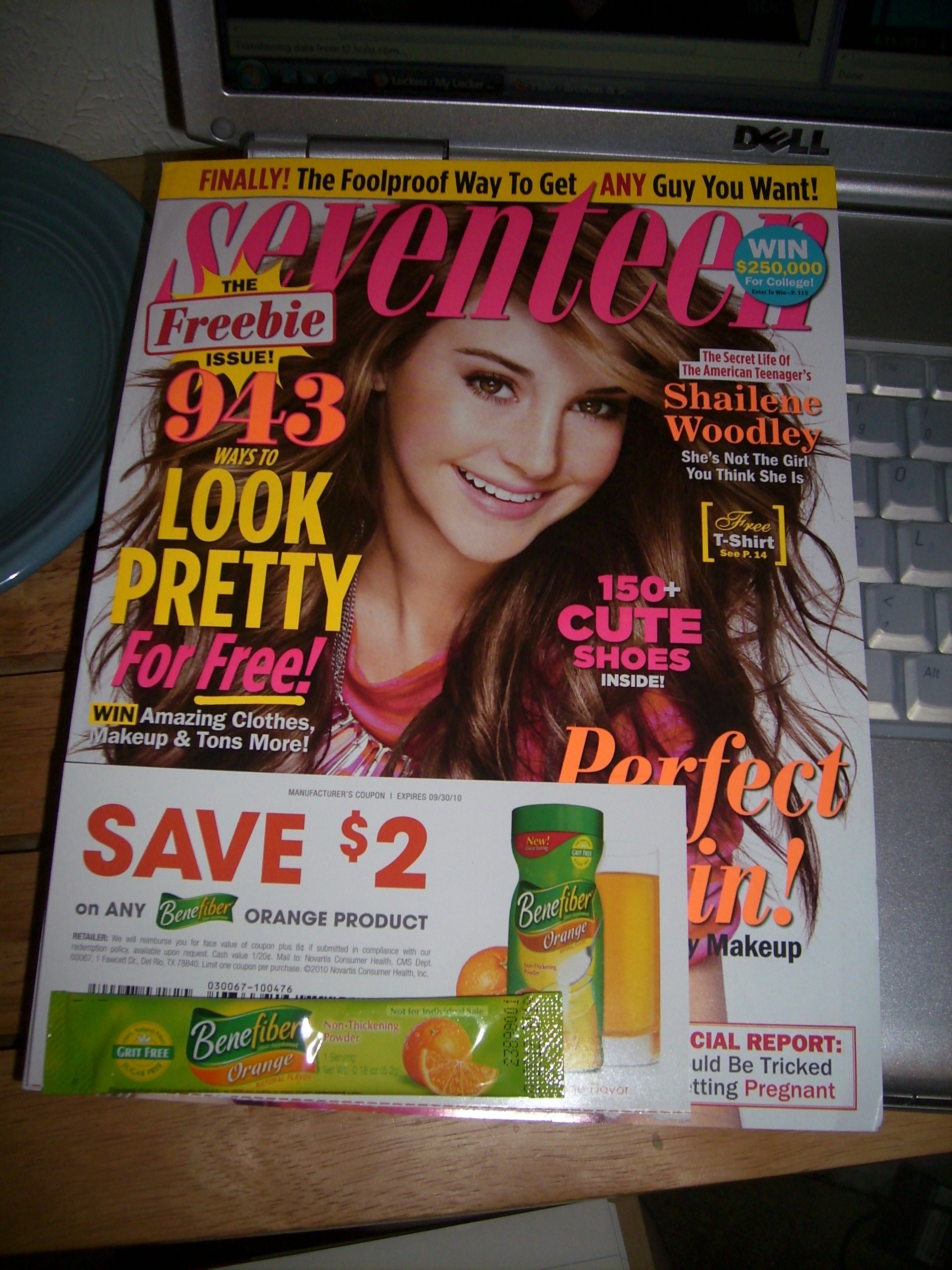 -Seventeen magazine (wanted to get that free Aeropostale shirt, but my mom says it’s not worth the drive to go get it. 🙁 oh well)