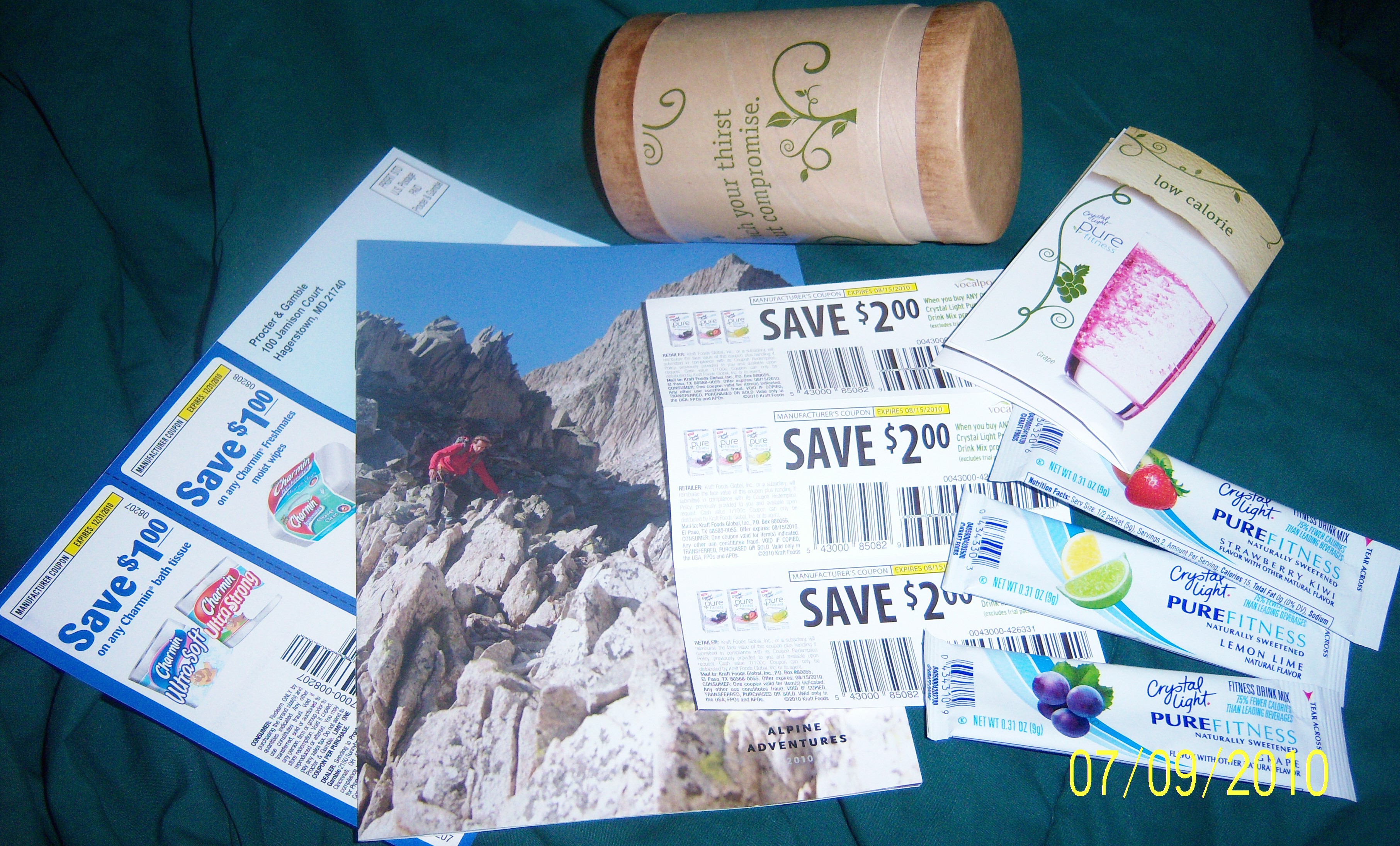 catalog, 2 charmin coupons & another Crystal Light pure fitness kit: 3 samples & 3 -$2 coupons