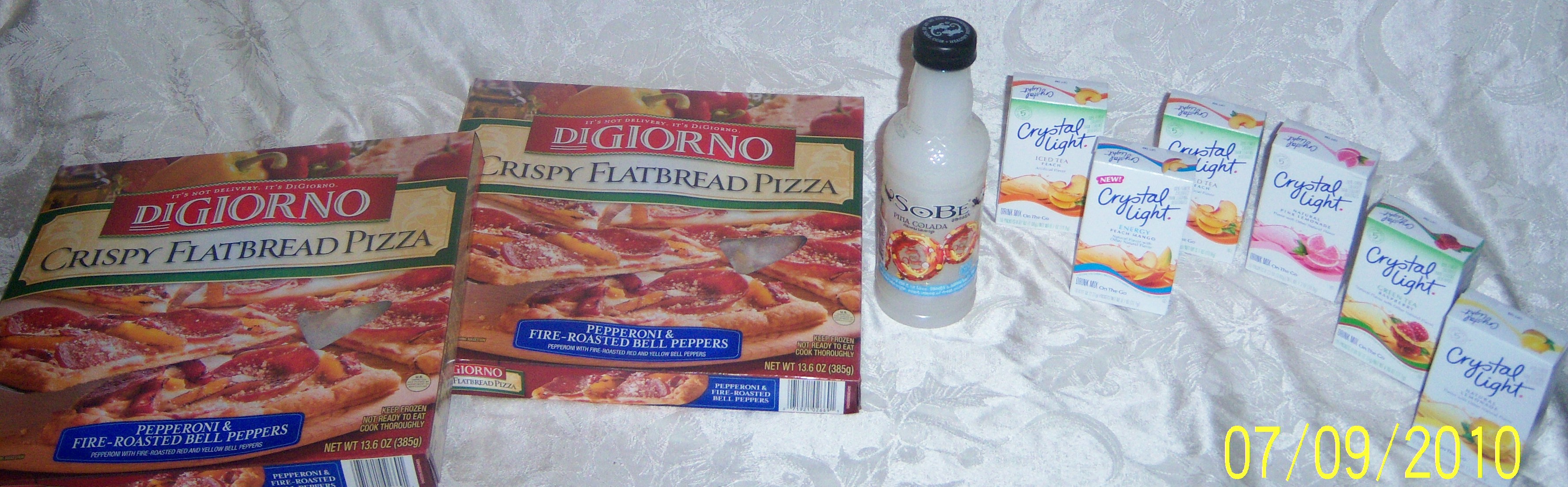 2 DiGiorno flatbread pizzas, Sobe drink, & 6 Crystal Light drink mix boxes