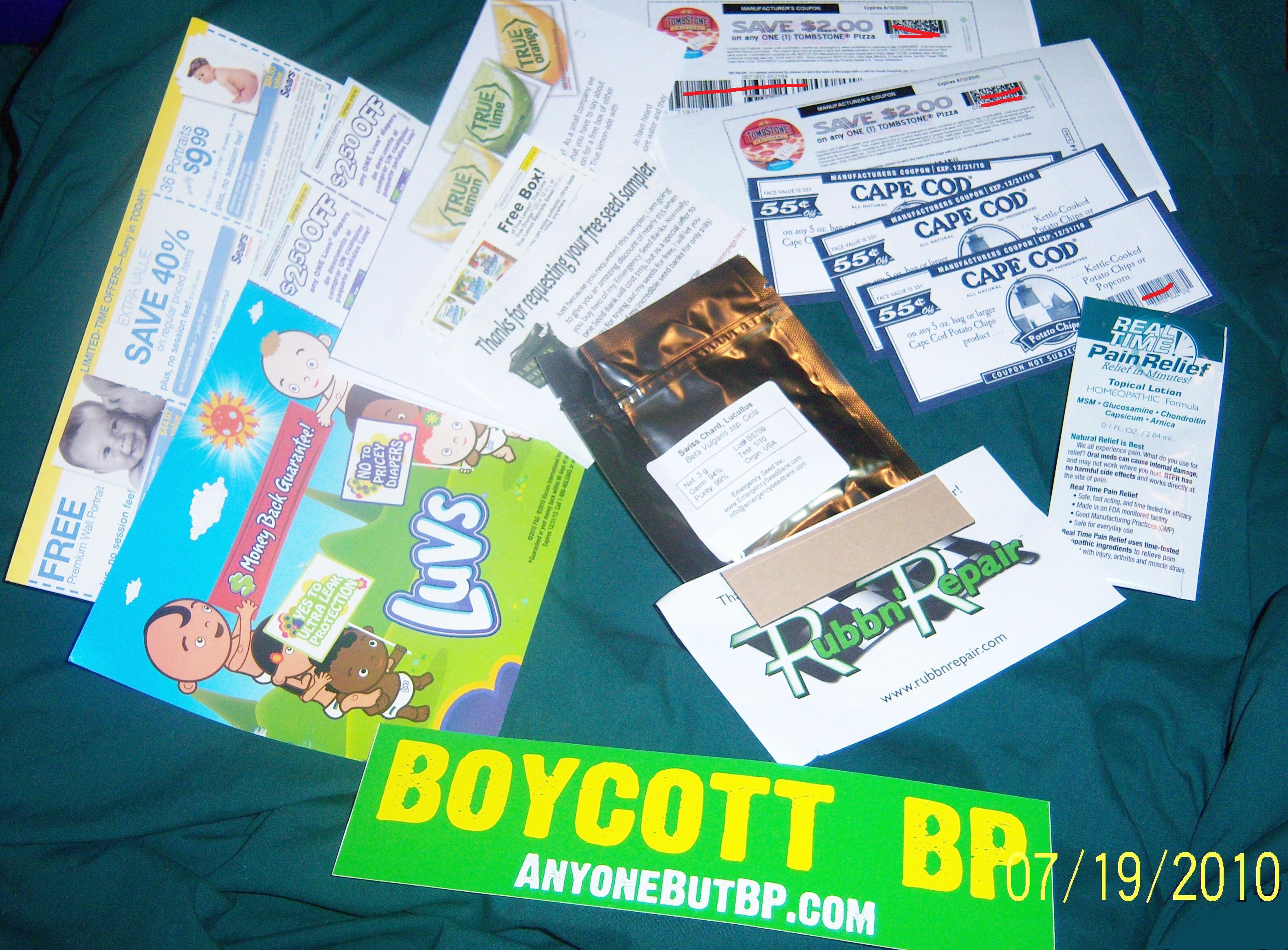 2 Pampers wipes/diapers coupons, Good News mag, Balanced Living mag, & catalog