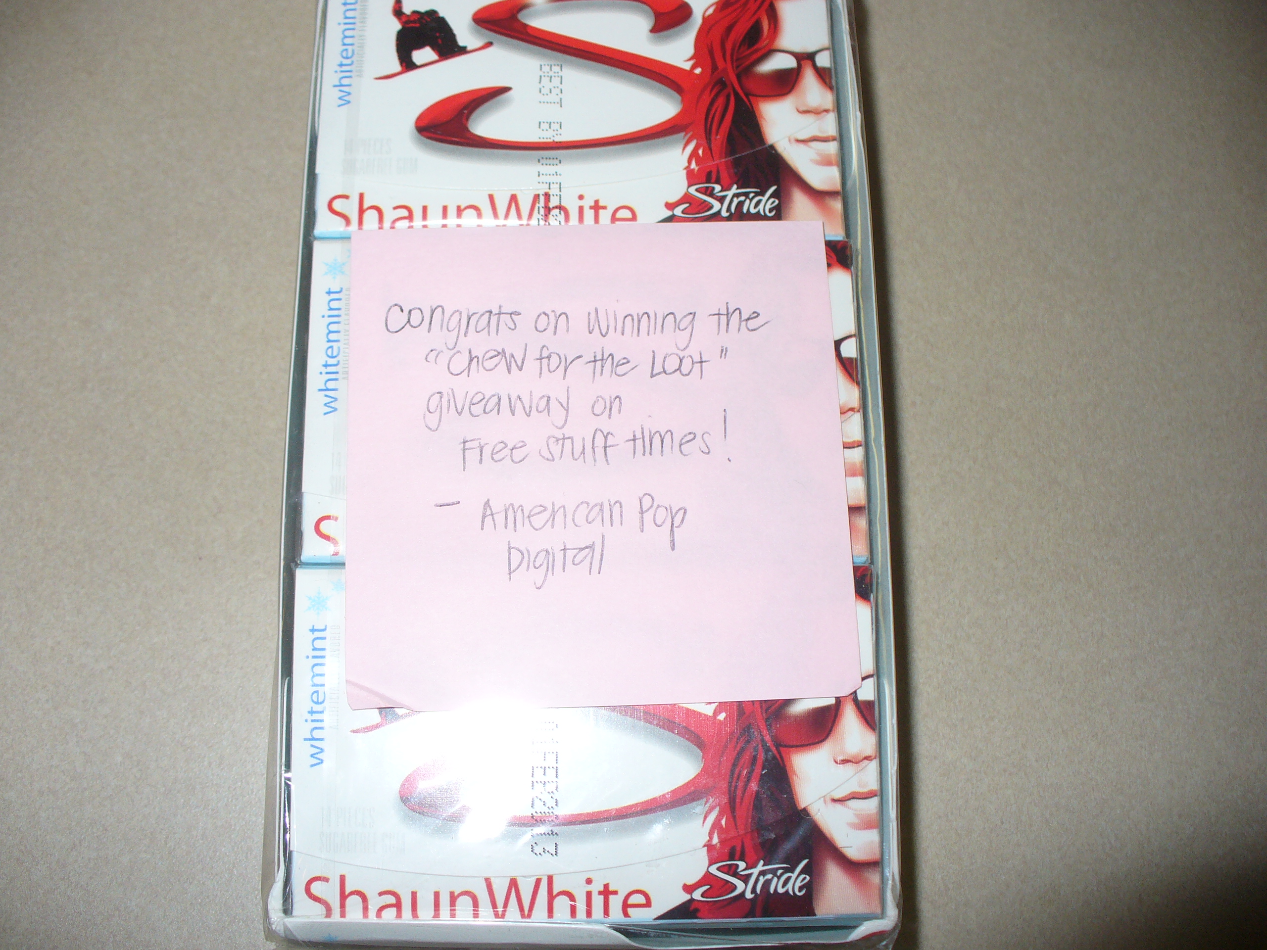 I just got a box of 12 Stride Gum packs in the mail today! Thanks Chris, Stride and Trident gum!