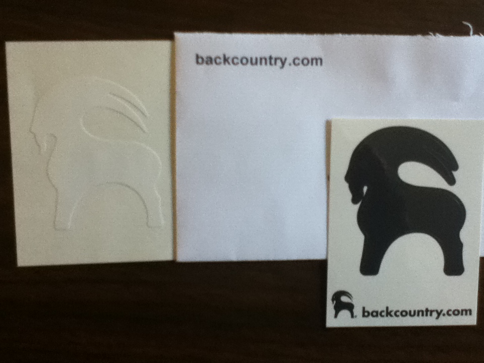 Dark gray and a white backcountry stickers