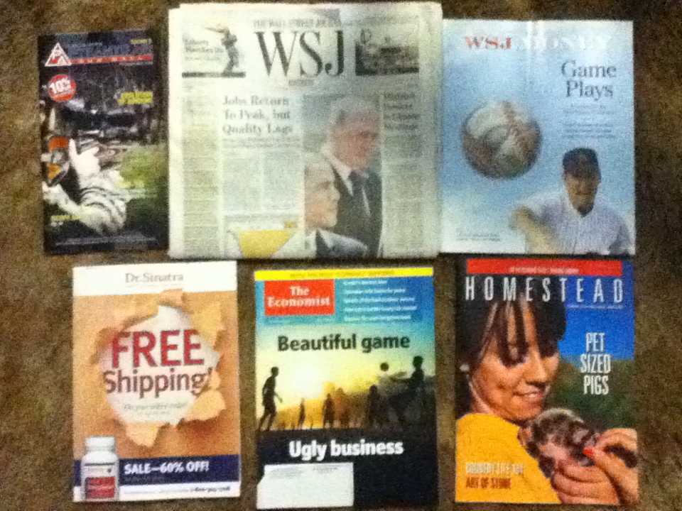 Pyramyd Air Gun Mall Catalog – The Wall Street Journal – WDJ.money Summer 2014 magazine – Dr.Sinatra Summer catalog – The Economist magazine – Homestead Summer 2014 magazine published by John Deere