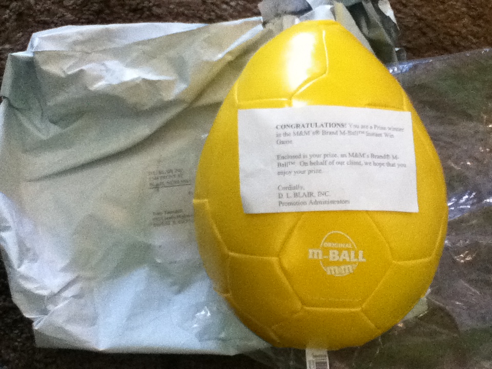 Winner in the “FREE M&M’S Brand M-Ball Instant Win Game” Won a M&M’s Brand M-Ball – Thank you D. L. Blair , Inc.