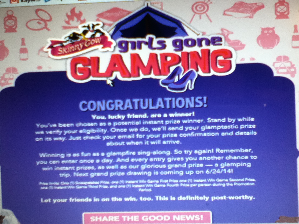 Winner in the Skinny-Cow-Girls-Gone-Glamping-Sweepstakes