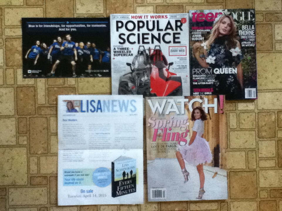Indiana State University Postcard – Popular Science April magazine – Teen Vogue April magazine – Lisa Scottoline Spring 2015 News Letter – Watch April magazine
