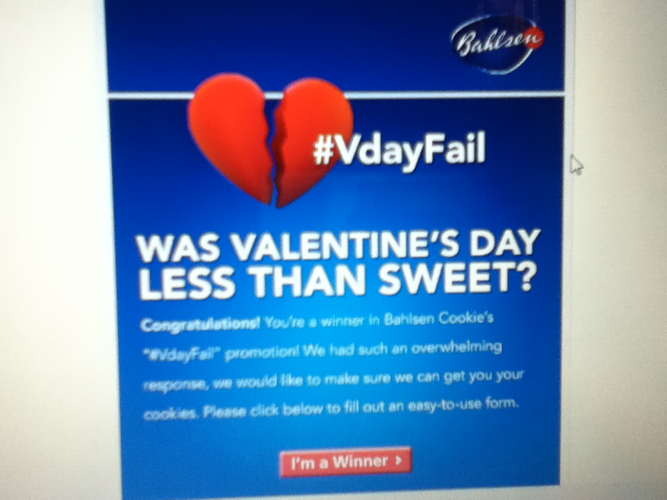 Winner in the Bahlsen Cookie’s #VdayFail Promotion – Won Cookies – Thank you Bahlsen USA