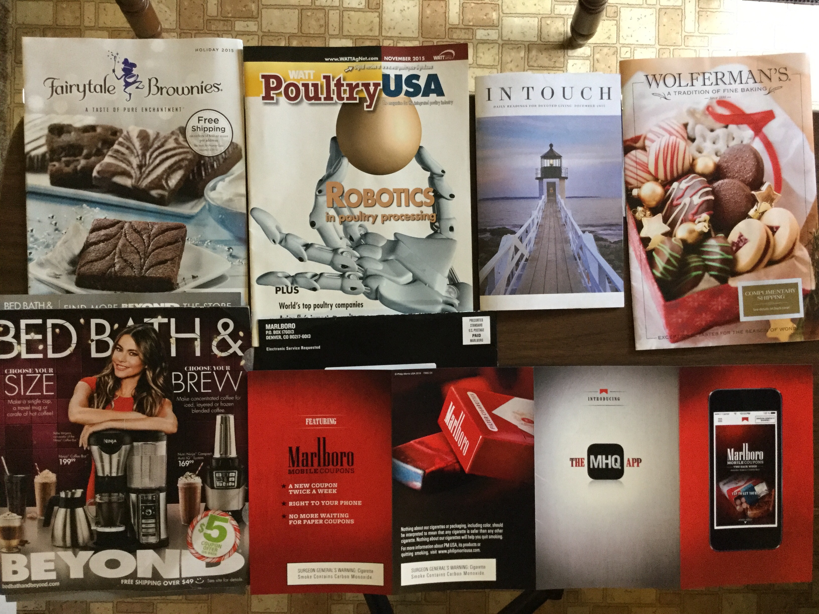 πͺ Fairytale Brownies catalog π WATT Poultry USA catalog π In Touch Daily Readings for December π° Wolferman’s Baking catalog π Bed Bath & Beyond Catalog π΄π¬ Marlboro trying to get me to go to digital way on phone π¬