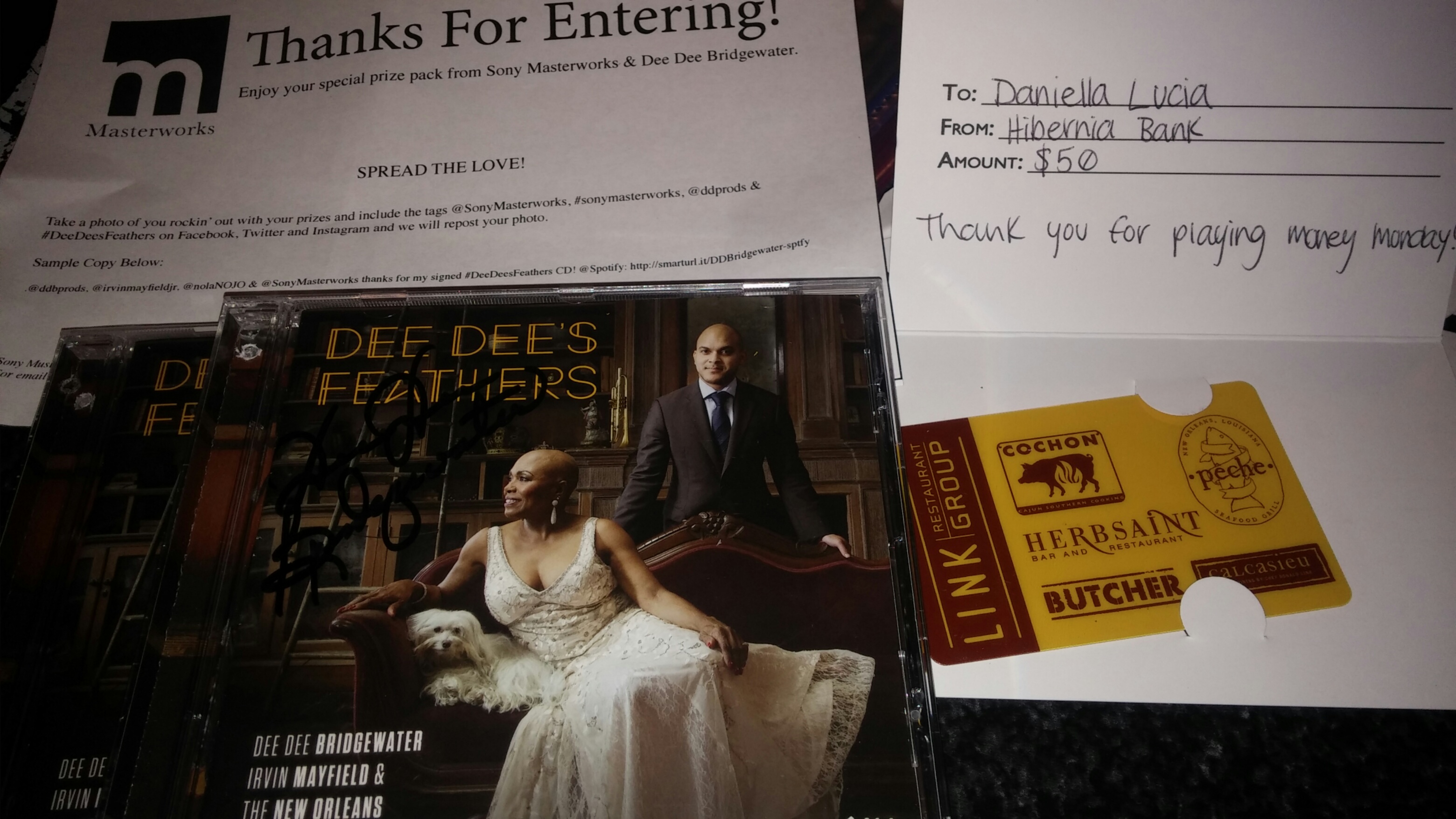From Sony Music- two CDs of Dee Dee’s Feathers with Irvin Mayfield and the New Orleans Jazz Orchestra, one of them signed!