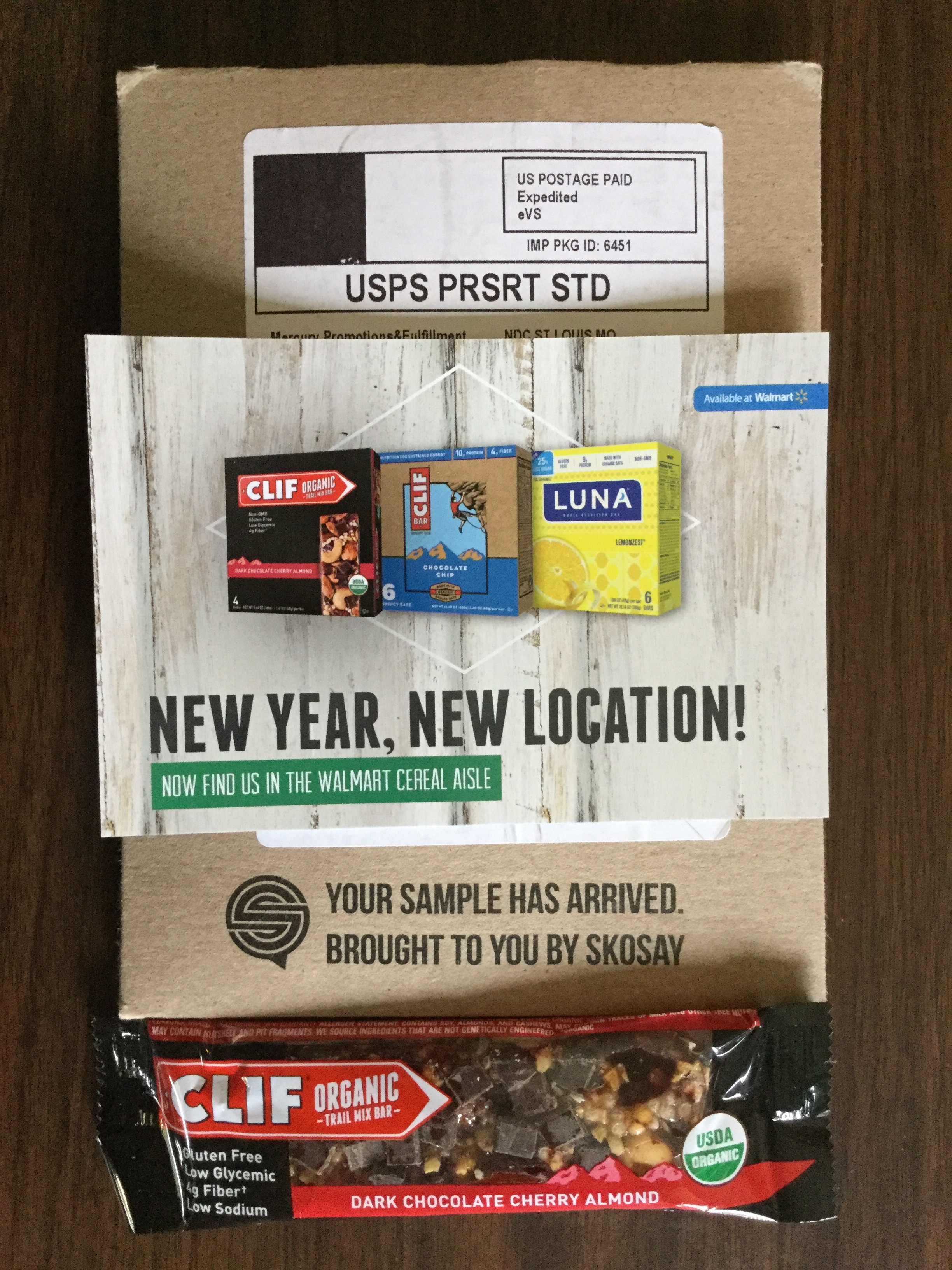 🍫 🎀 Thank you very much Mercury Promotions & Fulfillment 🏅 and Skosay Text Offer for our Free CLIF Organic Dark Chocolate Cherry Almond Bar 🍒 Love it ❤️ 🎉