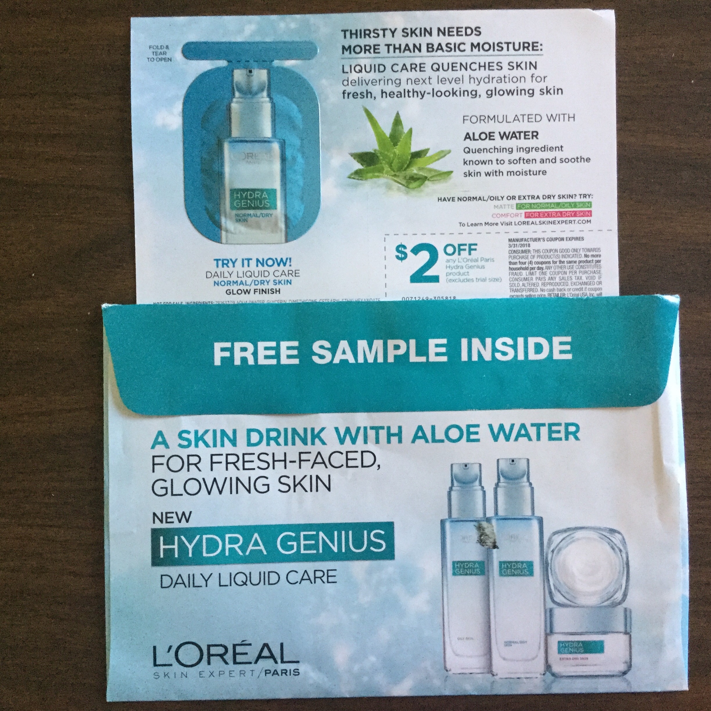 📬 🎉 Thank you very much L’Oréal Paris 🛀 🚿for our L’Oréal Paris Hydra Genius sample and coupon 💦 🌈 my new SkinDrink 🍹 ❤️