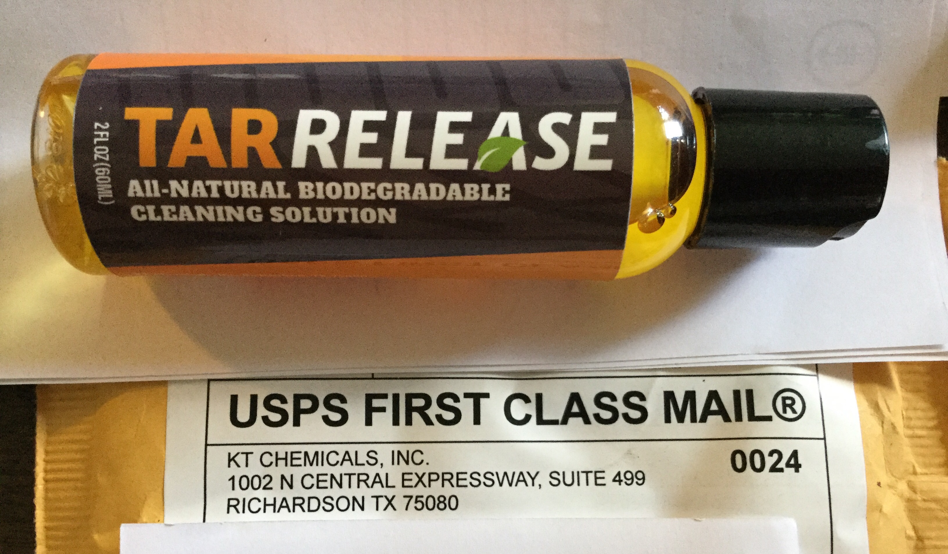 📬🎉Thank you very much KT Chemicals Inc and Tar Release 🚰🚪for our Tar Release All-Natural Biodegradable Cleaning Solution sample 🏆🏅from KT Chemicals Inc 🔑🎀Really cleans great 👍🏻❤️