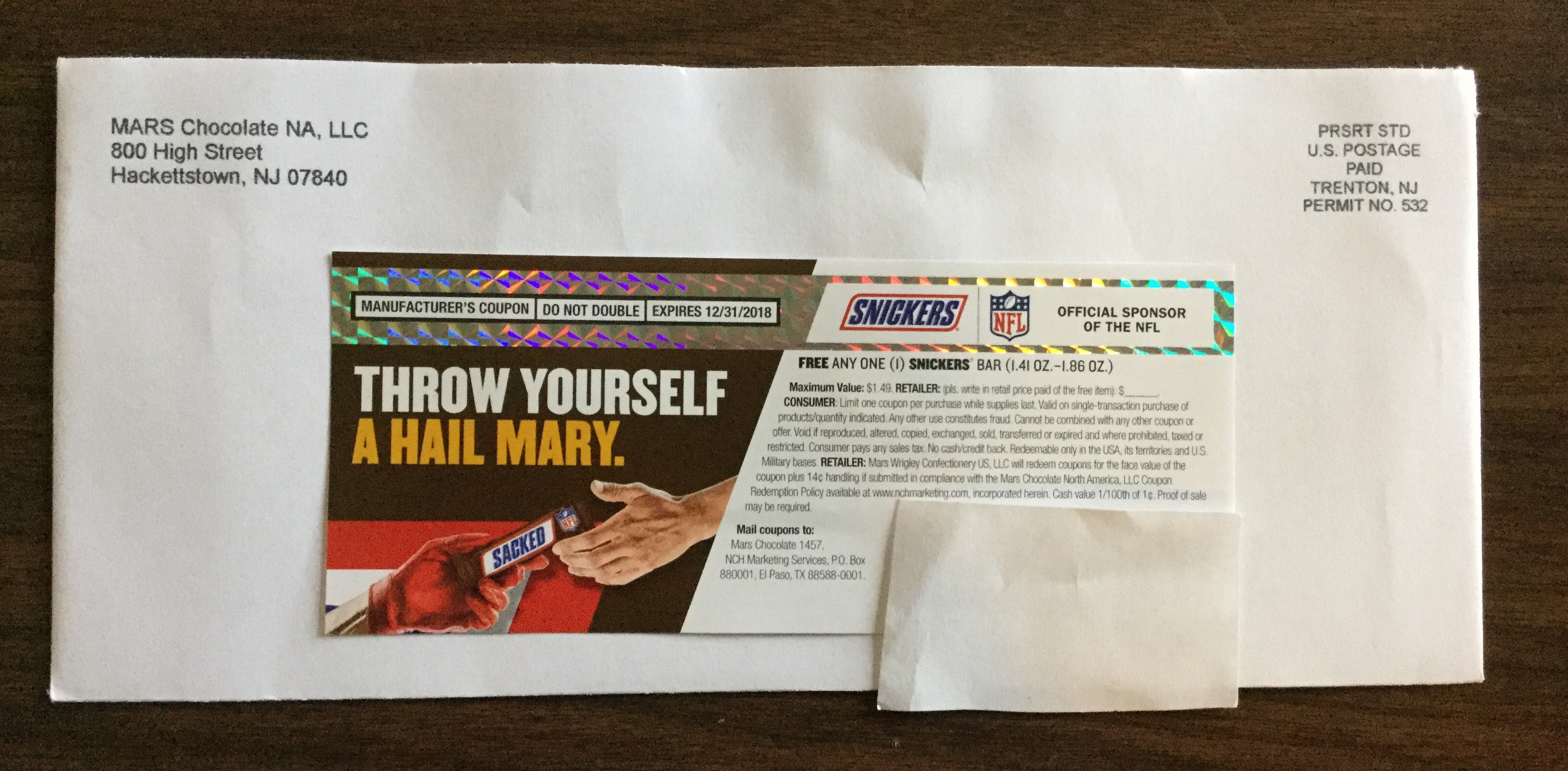 📬 Thank you very much Mars Chocolate LLC 🏉 and SNICKERS 🍫 for our FREE Snickers Bar Official Sponsor of the NFL 🏈