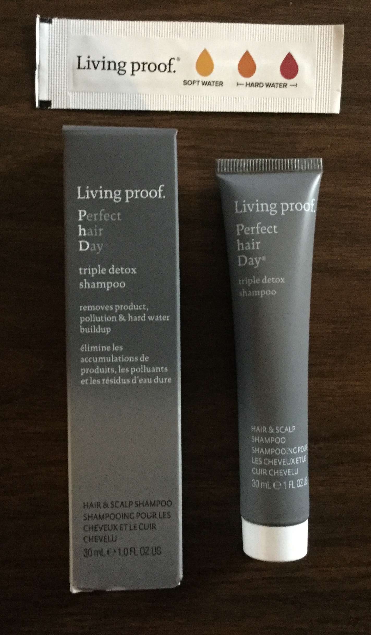Living Proof sent me a FREE sample of #LivingProof Perfect Hair Day triple detox shampoo. Very pleased with results. Makes hair feel really clean. Our water strip test showed we have hard water. Thank you very much Living Proof!