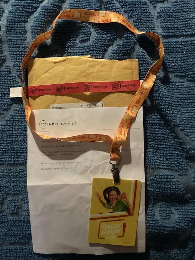 ๐ Winner in the Oscar Mayer Fest promotion from HelloWorld ๐ You’ve won an #OscarMayer Lanyard & Wristband! How exciting! ๐ Thank you very much #HelloWord & #OscarMayer ๐ฟ