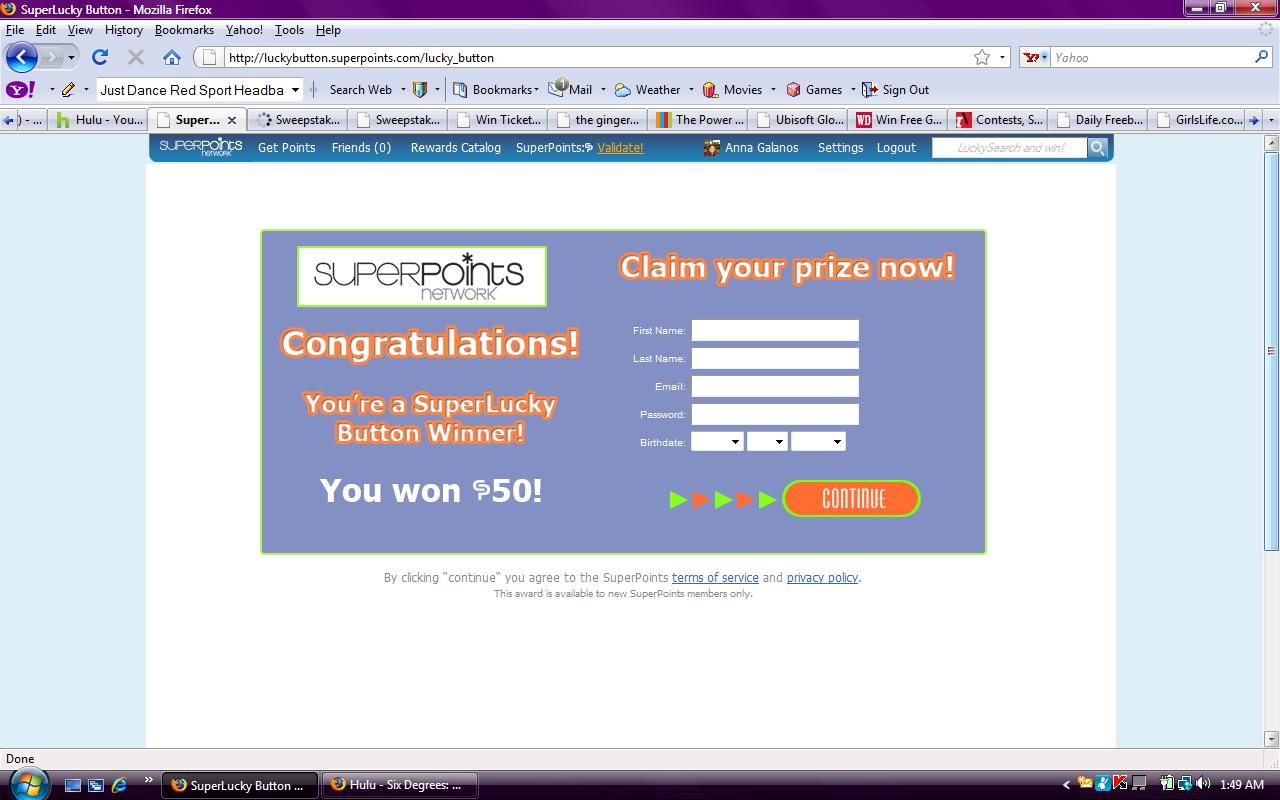 Won 50 points. You can click everyday and earn points to get rewards. http://www.superpoints.com/lb/annagrant14