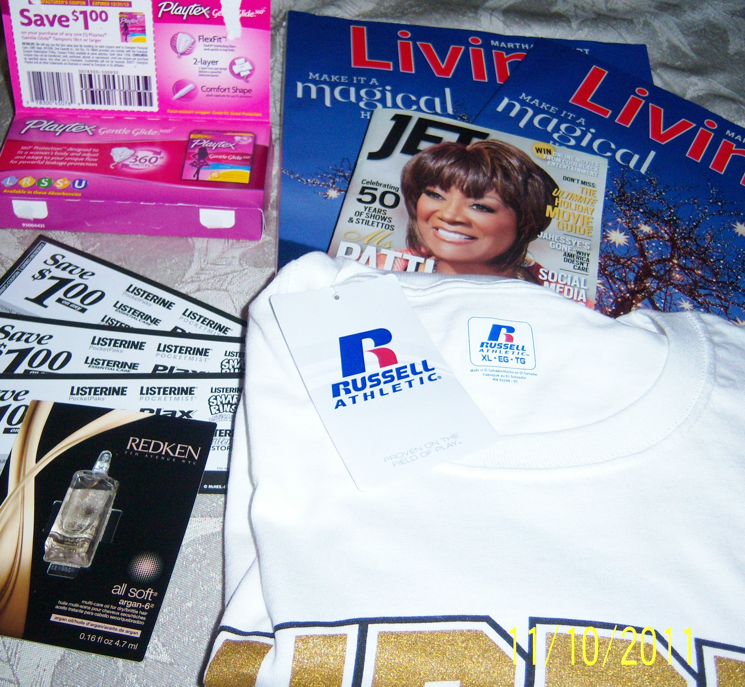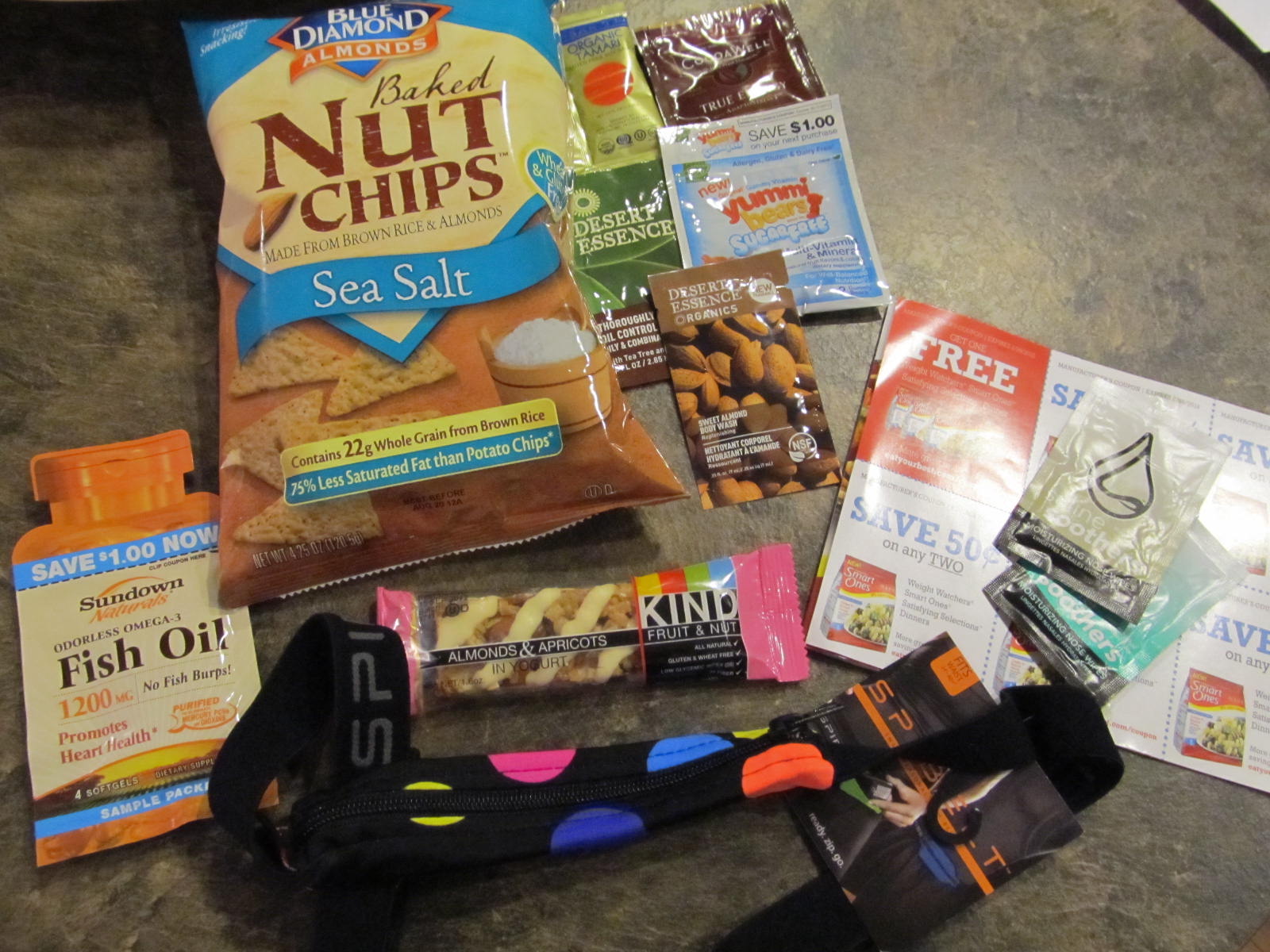 Bunch of samples from Naturally Savvy, Kind bar, Sundown fish oil sample, free Smart Ones dinner coupon, Saline Soothers samples, free running belt from OpenSky (thx to $25 credits) 🙂