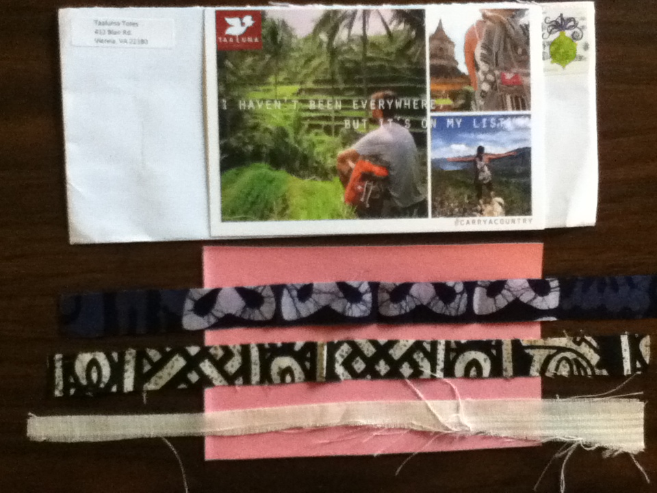 Taaluma Totes Post Card & Traditional Fabric Samples – Totes are made by adults W- disabilities